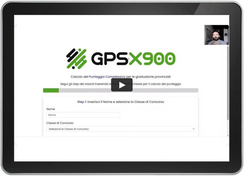 GPSX900 esalta il lavoro dei nostri tutor con lo scopo di mostrarti, in pochi minuti e con precisione matematica, quante probabilità hai di diventare docente in una qualsiasi provincia italiana, a tua scelta.
