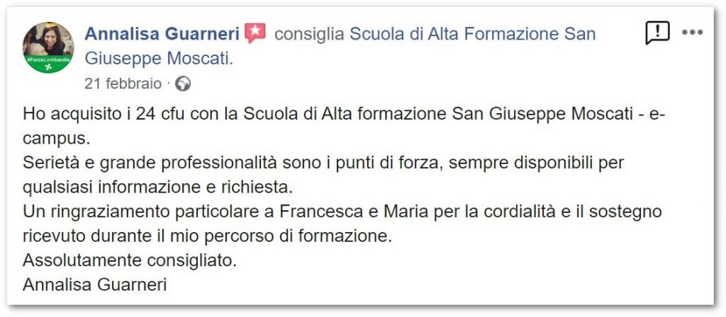 Il nostro corso per conseguire i 24 cfu è completamente online.