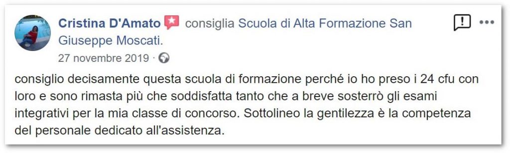 Scuola Moscati è la Scuola di formazione Leader in Italia per chi ambisce di entrare nel Mondo Scuola ed è L’UNICA che ha scelto di selezionare degli esperti in grado di spiegarti esattamente ogni domanda del prossimo appello dei 24 CFU, limitando quasi a zero la possibilità di sbagliare l’esame.