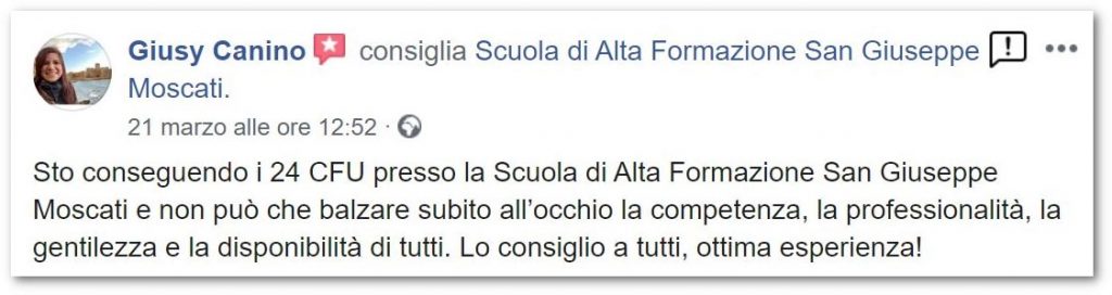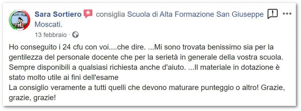 Proprio per questo, noi della Scuola di Formazione San Giuseppe Moscati abbiamo deciso di creare un’offerta esclusiva, una vero e proprio OFFERTA IMPERDIBILE, che permetta ai nostri studenti – in maniera EFFICIENTE, PRATICA E SOPRATUTTO VELOCE – di ottenere i 24 CFU PRIMA DEL 31 OTTOBRE 2022 e DIVENTARE DOCENTI.